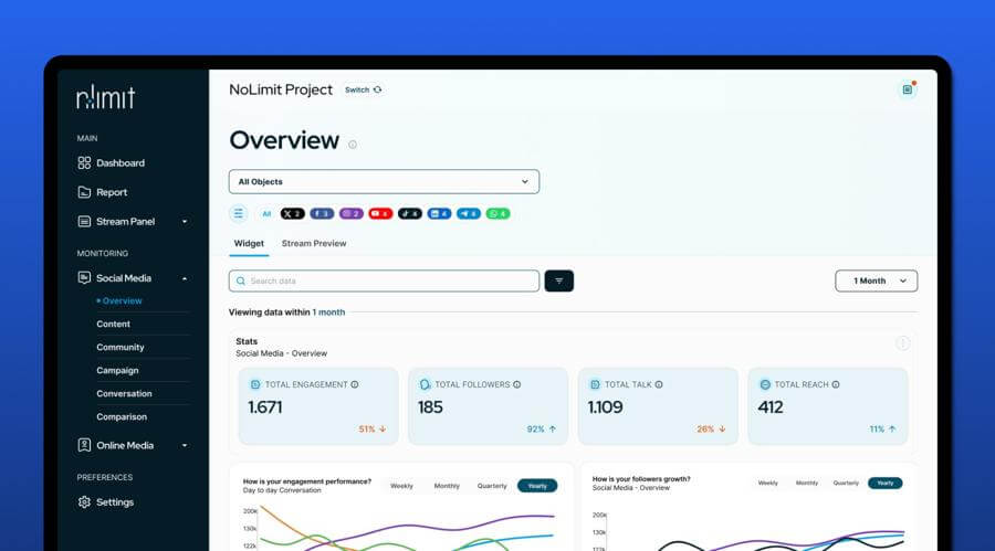 Gain a complete view of your social media metrics and turn data into actionable insights with digital analytics. Access in-depth analysis across content performance, audience behavior, and even competitor activity. You can also monitor online media and convert your brand exposure into measurable business value.